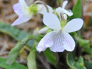 小雨模様の中、足元を気にしながらカッパをかぶり、傘をさしての観察は写真やメモを取るにももたもたします。まずタチツボスミレを見て、イロハモミジの花を見上げ、あちこちの桜を眺めたりしながら梅林を抜け、道路を渡って田んぼへ向かいました。草がきれいに刈り取られた所にはワラビが一本伸びていて周りにはイタドリ、ツリガネニンジン、オニユリなどの若葉が伸び始めていました。田んぼの周りにはガズノコグサとスズメノテッポウが花穂を出していました。昨年の同じ時期にアリアケスミレの花がいっぱい咲いていたところは、チガヤとセイタカアワダタチソウの枯葉や茎に覆われて花が見当たりません。アリアケスミレの群落は田んぼの向こう側の草の刈り取られた畦にありました。ヤマトシジミやベニシジミははねがぬれてスムースに飛べないようでした。そのほかにアマガエルやヌマガエルを観察しました。後でアマガエルの画像を詳しく見たところ背中はきれいな緑色で手足が緑と茶色の迷彩色になっているのに驚きました。雨がすこしふりだしたところで梅の館に戻り、観察した生き物のおさらいをして解散しました。(記・大野 )