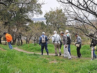 前日の天気予報では9日午前中まで雨が残るとのことでした。また一般の参加希望者もないことがわかったので、梅の館の担当者と相談の上、中止と決めました。しかし当日は熱心な会員の方々が次々と集まられたので、会員と会員の家族の研修会として観察会を行いました。