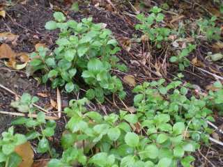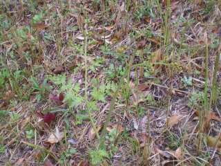 【左】 ツリガネニンジンが芽を出しました。 【右】ツクシが伸びていました。