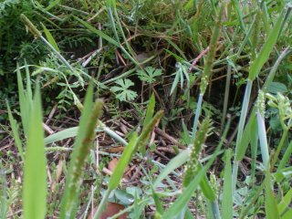 タチツボスミレ、アリアケスミレ、スズメノヤリ、ヒメオドロコソウ、カラムシ、イロハモミジの花、ニホンタンポポ、ハルジオン、スイバ、ナズナ、ホトケノザ、ハコベ、オランダミミナグサ、オオバコ、ツワブキ、ウメノキゴケの仲間、スズメノカタビラ、カラスノエンドウ、チチコグサモドキ、タネツケバナ、セイヨウタンポポ、ワラビ、イタドリ、アザミ、ツリガネニンジン、オニユリ、オニタビラコ、ヘビイチゴ、スズメノテッポウ、カズノコグサ、コメツブツメクサ、ハハコグサ、ノミノフスマ、セリ、ノビル、コオニタビラコ、オオジシバリ、ヨモギなど