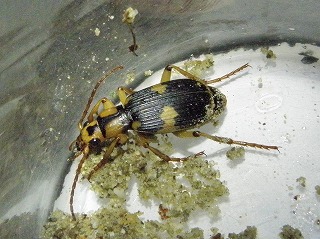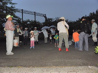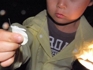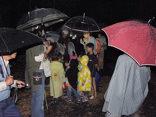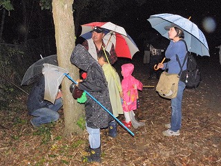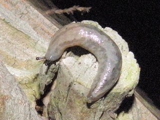 集合時間少し前から、雨が降り始めたため、灯火のセットをあきらめナイトハイク観察のみとした。 歩き始めると、傘が必要になったが、とりあえずグランドのほうに歩きながら観察、グランドの林で、ユミアシゴミムシダマシ、ヤマナメクジ、ザトウムシなど観察。 先行して、霜鳥さんがヘイケボタルの発生地を見て回り、今日は出ていないとのことで、雨のためグランドを半周して終了とした。(記・小島)