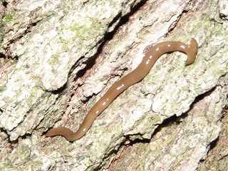 【左】ナメクジ 【中】コウガイビル(扁形動物) 【右】ハンテンボク