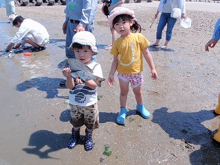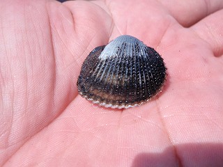 シオフキ(貝)がいっぱい、サルボウ(貝)1ヶ、干潟にすむナマコのなかま