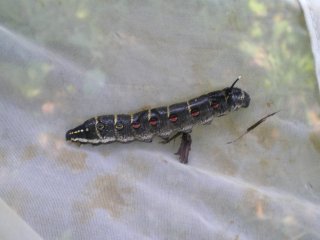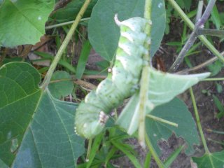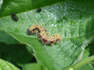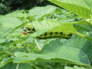 【左】アカタテハの幼虫? 【右】フクラスズメの幼虫?