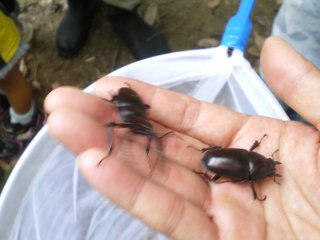 梅雨が明けて最初の土曜日。好天に恵まれ、暑い暑いとあせをかきながら観察した結果、ノコギリクワガタにであえ子供たちも喜んでいました。(記・吉房 )