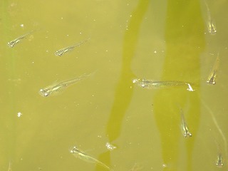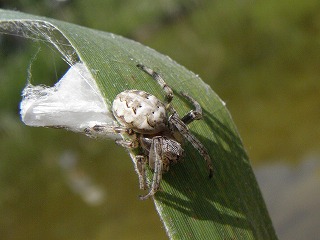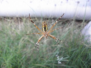 【左】メダカ 【中】ジョロウグモ 【右】ナガコガネグモ