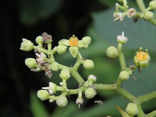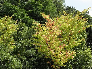 ベニバナセンブリ(外来)、クズ、アシ、ピラカンサ(外来)、ヌルデ、ノイバラ、サルトリイバラ、ナンキンハゼ、アラカシ、マテバシイ、クスノキ、シナサワグルミ(外来)、シイ、ヤマモモ、ハンテンボク(ユリノキ)(外来)、トウネズミモチ(外来)