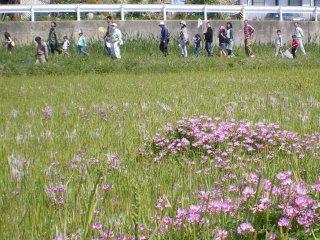 オオジシバリ、スギナ、ニホンタンポポ、セイヨウタンポポ、シロバナタンポポ、 スイバ、ヨモギ、センニンソウ、ハルノノゲシ、マンテナ、マツバウンラン、ブタナ、 キュウリグサ、コメツブツメクサ、スズメノエンドウ、カラスノエンドウ、ノミノフスマ、 オオイヌノフグリ、トウダイグサ、カタバミ、ギシギシ、アシ、スズメノヤリ、クズ、 レンゲソウ、シロツメクサ、ハハコグサ、オランダミミナグサ、マメナシ