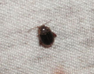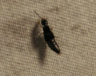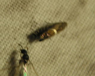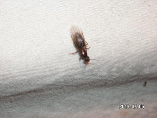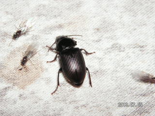 【左】羽アリ(白布を覆うくらい来ました) 【中】クロヘリヒメテンヨウ(体長約2ミリの小さなテントウムシです) 【右】ハネカクシ類