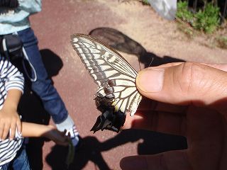 【左】アサギマダラをつかまえて大喜び  【右】昆虫好きなお兄さんが手際よくつかまえて…