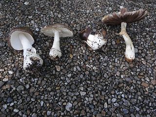【左】花から花へ飛び移っていつまでも同じような場所に…  【中・右】キノコ→図鑑で調べる→似たものはあるが決められない