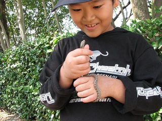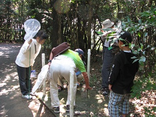 観察の終わりころに普通なら気づかずに通り過ぎる場所で“へび”を発見しました。みんなで何かないかと探しながら歩くと、本当に、誰かが何かを発見するものです。お陰で、へびちゃんとだいぶ遊びました(後段の写真参照)