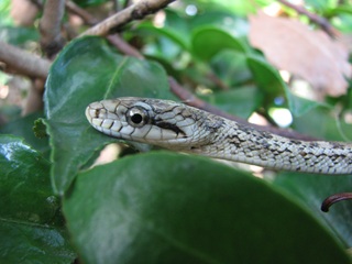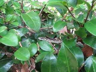 ◎以下、生垣でじーとしていたアオダイショウ(やしきまわり)との出会いのひととき