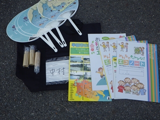 【左】生きもの説明中の全体風景   【右】主催者が受付で参加者に配付した“おみやげ”