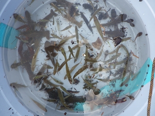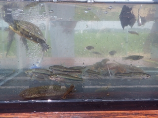 家族ごとにバケツに獲物をもって上がってくるのでそれをきれいに洗って、きれいなミニ水族館を作りました。きれいなミニ水族館は、いつものことですが、子どもたちには大人気です。
