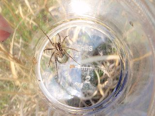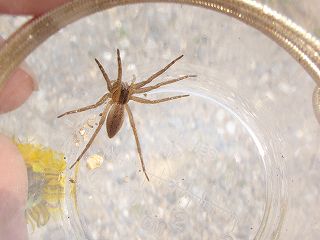 【左】イオウハシリグモ    【中】同左の拡大     【右】ガガイモの綿毛飛ばし遊び
