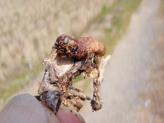 【左】みの虫    【中】カマキリ(チョウセンカマキリ)の卵   【右】子持ちグモ