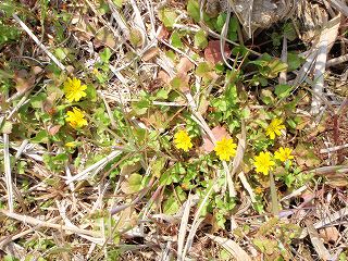 コオニタビラコ、オニタビラコ、レンゲ、カラスノエンドウ、スズメノエンドウ、シロツメクサ、オランダミミナグサ、ミミナグサ、コハコベ(茎が茶色)、ミドリハコベ、ウシハコベ(葉が波打つ)、キュウリグサ、オオイヌノフグリ、タチイヌノフグリ、タチツボスミレ、スミレ?、フモトスミレ、タネツケバナ、ナズナ、ホトケノザ、ヒメオドリコソウ