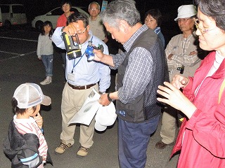 【左】ヒメボタルのお話し  【右】ヒメボタルの資料を見ています。