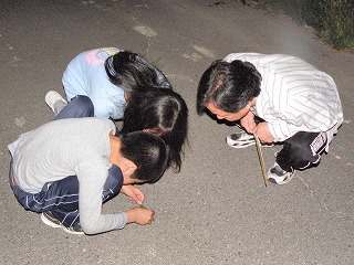 ミカンの花が咲くころがヒメボタルの見られるころということですが、今年はなかなか気温が上がらず出方がちょっと遅めかも。自然の移り変わりというのは年によっても天気によっても微妙で、蛍の見られる数も見られたりそうでなかったりと、年によって違うというのが、行くたびにどきどきして新鮮で「自然」らしくてよいものかもしれません。ただ、街灯という「デート」の邪魔者がふえたのはホタルにとっては受難の時代と年々なってきているような気がします。(記・竹内秀)