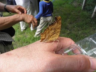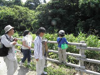 梅雨明け宣言がされて早々の観察会。8時過ぎると照りつける日差しも突き刺さってくる。於大公園の駐車場日陰にに集合した。今年から環境課の主催(年5回)の中の1回となり、環境課の方のあいさつからスタートする。そして、緒川新池に移動。新池下のところに駐車した。子どもはタモと入れ物を持ち、おばあちゃんとチョウトンボを追いかける。コシアキトンボは高いところを乱舞していた。池のふちを通って竹と雑木の林には、お目当てのカブトムシはいなかったが、。「つかまえた。」と、タモの中に入っていたのはショウリョウバッタ。遠くの方で、ニイニイゼミの鳴き声。ワラビがたくさん伸びていた。大きな虫取り網をもった参加者がオニヤンマをつかまえた。久しぶりに見る「王者」にしばし見とれた。オオシオカラトンボは、捕まったのに怒ってがぶりと指にかみついていた。たくさんのトンボが見られた。