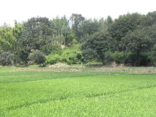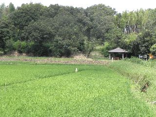 里山風景。稲作りに精を出して世話をされている方がいました。
