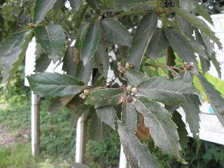 【左】かみついたオオシオカラ。 【右】実かと思えば虫えいです。(コナラ)