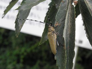 【左】ウスバカミキリ。 【右】コフキゾウムシ
