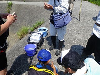 【左】観察のコツと注意事項周知 【中】生きもの探しと採集 【右】採集した生きものについて分かち合い