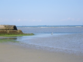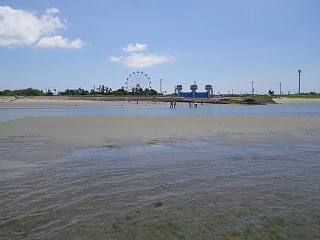 【左】砂浜の景観 (内陸はビーチランド) 【右】河口付近の突堤と周辺の淀み