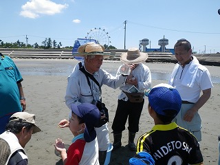【観察会の様子】 その2 砂浜干潟での生きもの観察