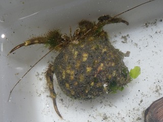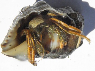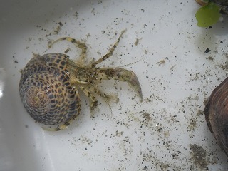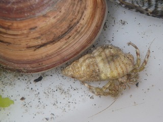 【左】コブヨコバサミ (宿貝:イボニシ) 【中】スジエビモドキ 【右】