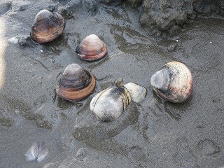 シオフキ、アサリ、バカガイ(アオヤギ)、マテガイ、ハマグリ