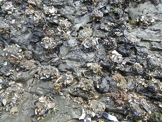 ヒザラガイ、スガイ、イボニシと卵嚢、キクノハナガイ、イワガキ(貝殻大)
