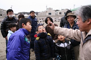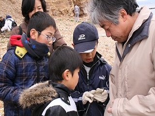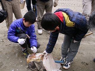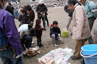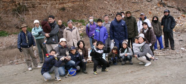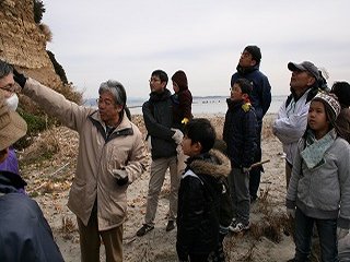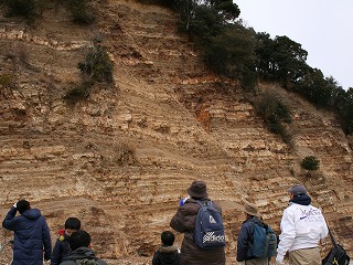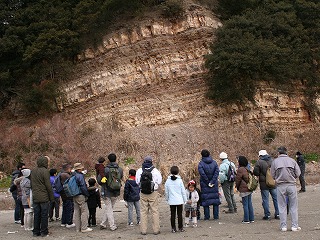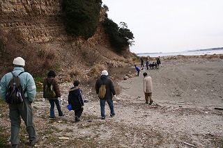 昨年は崖の状態が危険で化石採集を見合わせた観察会でした。そのようなことから今年は観察会のタイトルから「化石探し」を抜いたところ、参加者が激減しました。しかし長年続けていることから「化石」の二文字が無くても、リピーターのみなさんは来ていただけるもので、何とか観察会の体をなすことができました。河原先生による海食崖の地層の説明からはじまり、みんなで化石採集に熱中しました。いつものように木下先生をはじめ化石に詳しい先生方の丁寧な説明に、参加されたみなさんは満足していただけたものと思います。一つの化石が子供たちの自然に対する興味・関心の入り口となることを願って、来年も続けて行きたいと思っています。 (記・永田孝)
