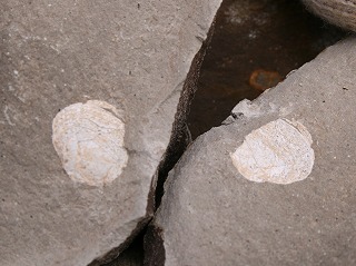 【左】魚の化石             【中】24             【右】スナモグリ(以前採集したもの)