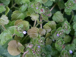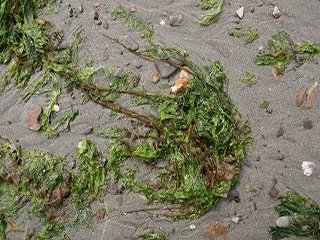 【左】フラサバソウ(外来)              【右】流れ着いていた海藻。アナアオサ、カヤモノリなど