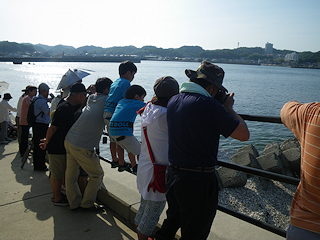ここのクサフグは5月中旬から7月上旬の期間で、潮の影響を受けて決まった日によく産卵することが分かっています。土日でないと観察会が開きにくいため、予測される日よりも1日遅いけどやむおえないということでこの日に観察会を予定しました。やはり前日に大規模に産卵が行われたそうでこの日は少なめでしたが、16時過ぎからようやく産卵が始まりその様子を参加者全員で観察することができ、それなりに満足の出来た観察会でした。(永田孝 記)