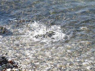 【左】産卵が始まると水しぶきが飛ぶ勢いです  【右】近くに寄って観察しました