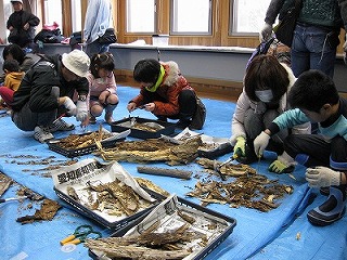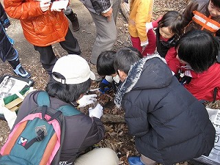 天気が心配されましたが、暖かく野外の活動日和となり、参加希望者も多くにぎやかな観察会になりました。研修室での説明の後、セレトナ周辺の林で参加者それぞれに朽ち木を探して早速生きもの探し、その後、落葉置き場でカブトムシの幼虫探しをしました。研修室に朽ち木を持ち帰り、そこでも親子揃って生きもの探しが展開。見つけた生きものの名前調べや解説などのまとめをし、最後に、参加者皆で虫や朽ち木などを森に返して閉会しました。今年はカブトムシの幼虫が1頭だけでチョッと期待はずれのようでしたが、冬の朽ち木の中にも色んな生き物が生きていることを観察できて、参加者の皆さんも満足な様子でした。(記:板倉)