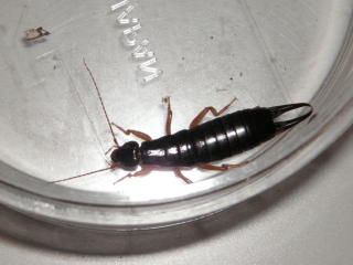【右】ヒゲジロハサミムシ(ハサミムシとは脚の色、触角の色が異なります)