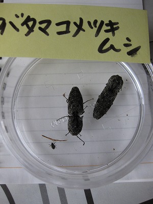 (成虫)ウバタマコメツキ、タテジマカミキリ、クチキムシ、ヨツコブゴミムシダマシ、ホソヒョウタンゴミムシ、コガタスズメバチ、アカシマサシガメ、シロアリ、ハサミムシ、ヒゲジロハサミムシ