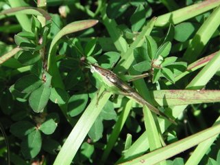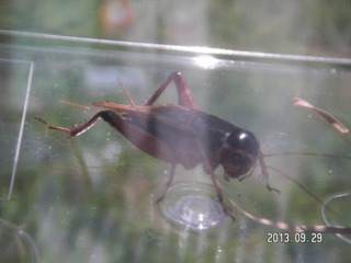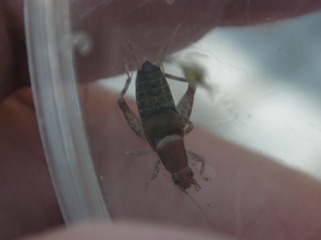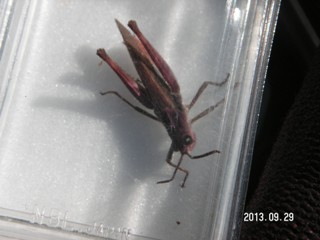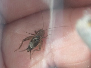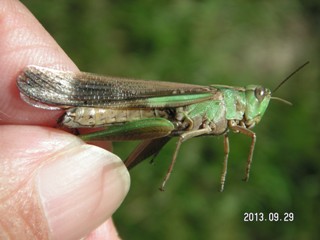 【左】カネタタキ♂ 【中】マダラバッタ(ヒナバッタより羽が長くよく飛ぶ) 【右】ヒナバッタ?(赤色型と思われます。時々出る)