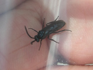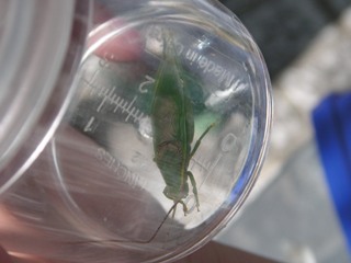 【左】オオカマキリ?(後ろ羽の紫色が薄い) 【中】ルリチュウレンジバチ(幼虫はつつじの葉を食べる) 【右】シバスズ