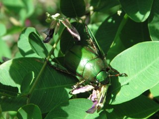 【左】ホシホウジャク? 【中】ホソヘリカメムシ 【右】コアオハナムグリ