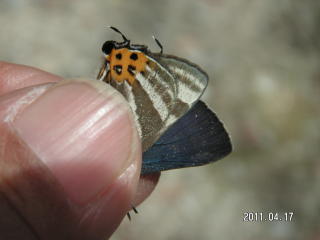 今日は晴れ。ただ風が有りちょっと肌寒さを感じる。桜が終わってようやく緑の芽が吹き出した。5歳から70歳までの一行19人。タモを持った子供が4人居て、お互い草原を探るように振る姿が愛らしい。生まれたてのバッタ類がぴょこぴょこと跳んだ。モンシロ、ツマキチョウも姿を見せる。