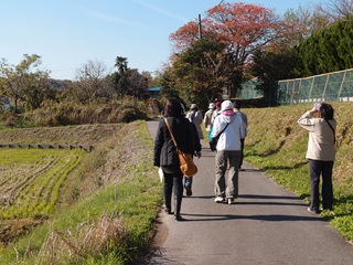 澄みきった青空に心地よい風がほのかにあって、観察会にはうってつけの、いやむしろもったいないような日に恵まれました。受け付け中に、もう今日はオオタカが現れました。カラスが集団で追いたてていて、少し経つとどこかに消えていきました。