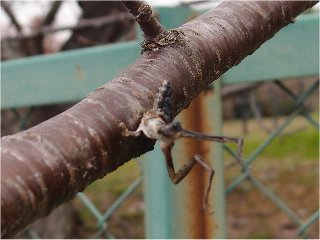 スタート直後、今度は子どもたちが桜の枝に突き刺されたケラを見つけました。子どもたちは「実に目ざとい」と感心しました。突き刺したのはモズで「モズのはやにえ」と言われるものです。(翌々日にはカエルに変っていました)