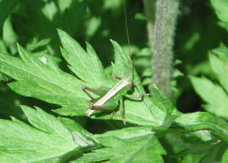 【左】キベリホソバ?        【中】キリギリス幼虫       【右】ヤブキリ幼虫(キリギリスの幼虫とは背中の模様が違います。見比べてください)
