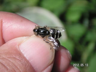 【左】ヒメヘリカメムシ類        【中】クロヒラタヨコバイ(葉の上のゴミみたいです)       【右】ハナアブ
